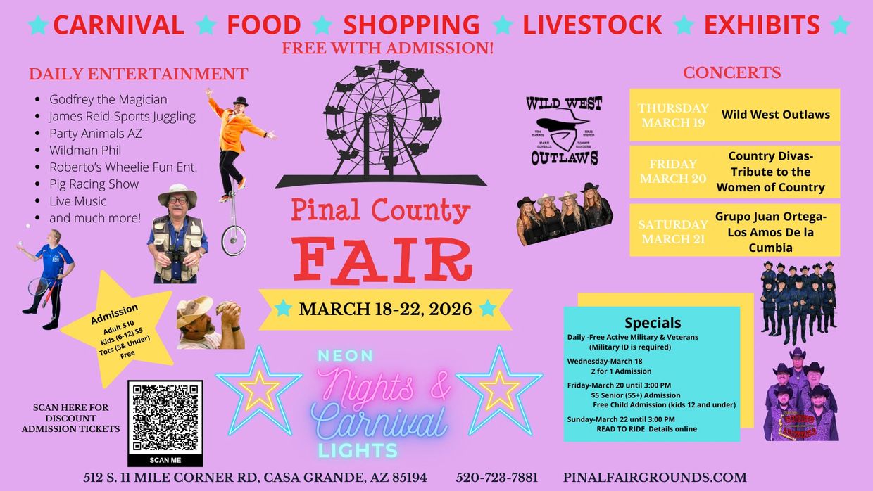 Grupo Jun Ortega brings vibrant energy and authentic regional Mexican sound to the fair stage Saturday night. Enjoy lively rhythms, crowd favorites, and nonstop dancing as they light up the night!