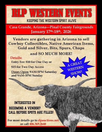 Vendors are gathering in Arizona to sell Cowboy Collectibles, Native American Items, Gold, Silver, Bits, Spurs, Chaps, and SO MUCH MORE!